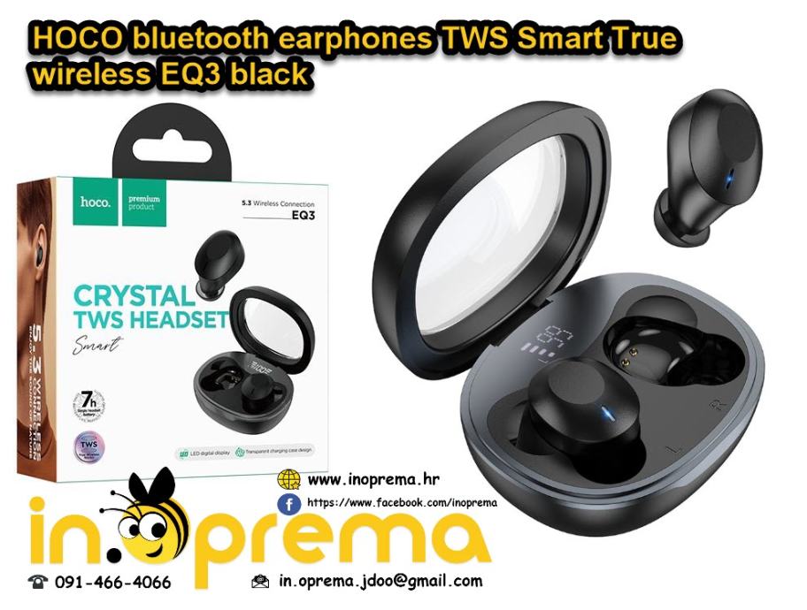 HOCO bluetooth earphones TWS Smart True wireless EQ3 black 091/466-4066 ZA DETALJNIJE SLIKE VIBER,WHATSAPP,POZIV,SMS,MAIL,SKYPE
