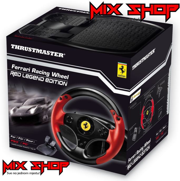 # novo zapakirano THRUSTMASTER FERRARI Red Legend Edition Driving Force Racing Wheel volan volani i pedale papuče logi za utrke gt za playstation 3 ps3 pc kompjuter mjenjač komp gaming konzola igraća za igreanje za voženje auta flashfire formule formula suzuka hurricane f106 f111