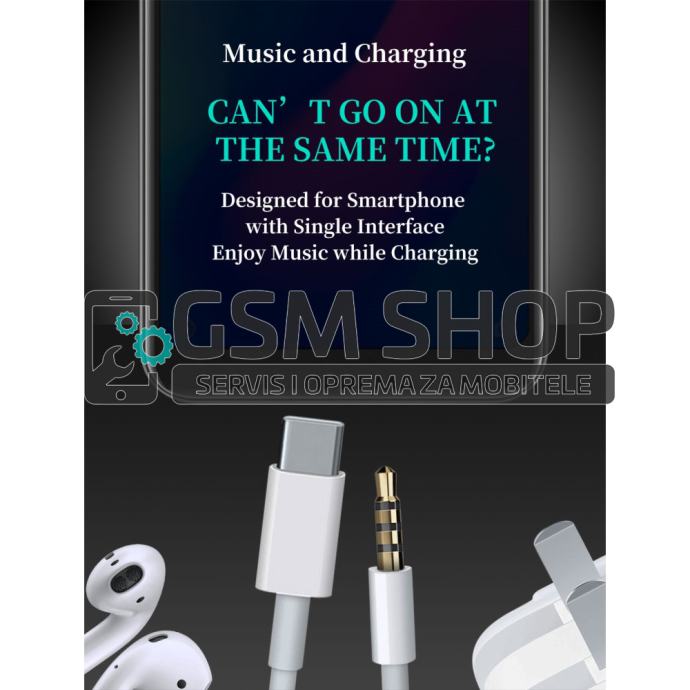 * USB Type C u 3,5 mm audio + priključak za punjenje Type C