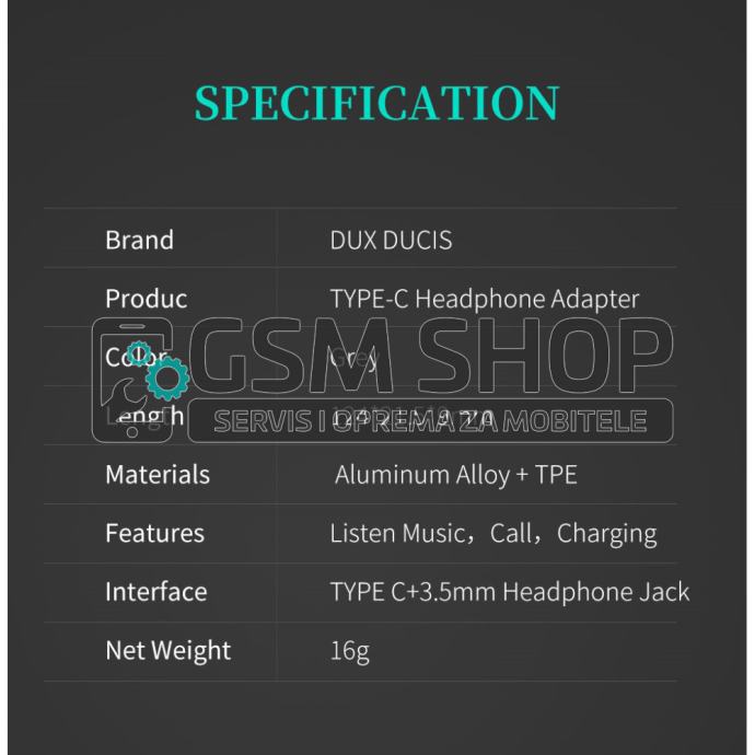 Audio adapter Type-C na 3.5mm + Type-C port za punjenje DUX DUCIS