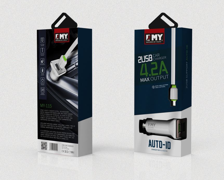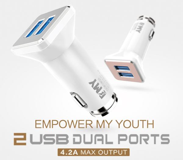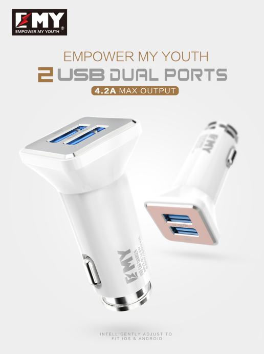 EMY BRZI AUTO punjač za 2 uređaja 4.2A sa Micro USB kablom GRATIS