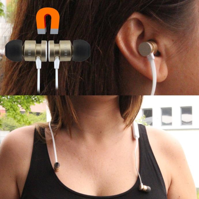 Zahvaljujući ugrađenim magnetima ovu slušalicu možete nositi na ramenima kad prekidate reprodukciju glazbe.