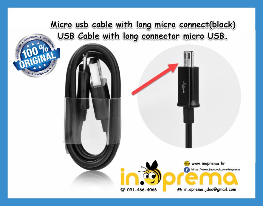 ⏩ TIP : Cabel USB MicroUSB crni duzi konektor