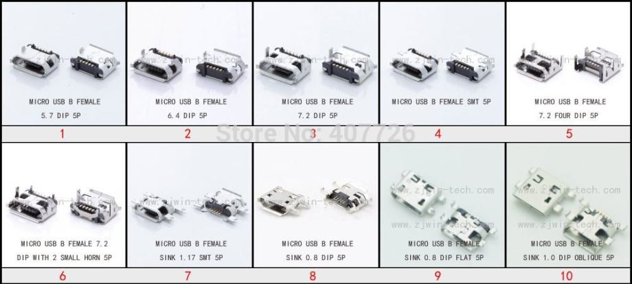 Više vrsta micro USB konektora*