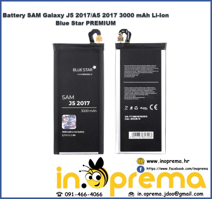 SAMSUNG GALAXY A5 2017 BATERIJA BATERIA ORGINAL BLUE STAR POSTARINA 10 KN 091/466-4066