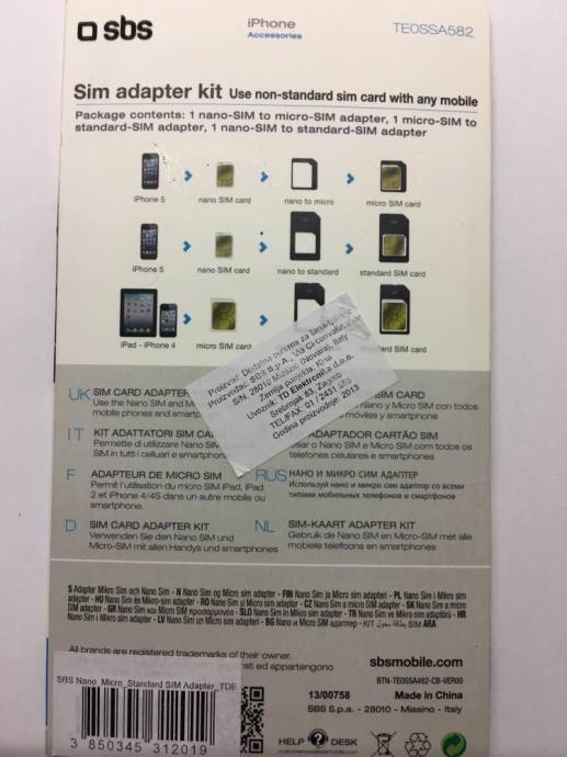 SBS SIM Adapteri 3/1 za Apple uređaje novo