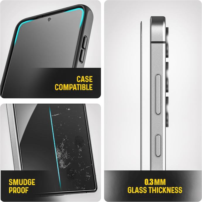 Kaljeno staklo izrađeno je od laganog i brušenog stakla debljine 0,3 mm, što ne utječe na osjetljivost dodira. Proizvođač na skali od deset stupnjeva ocjenjuje njegovu razinu tvrdoće 9H. To ga čini izuzetno otpornim na ogrebotine.