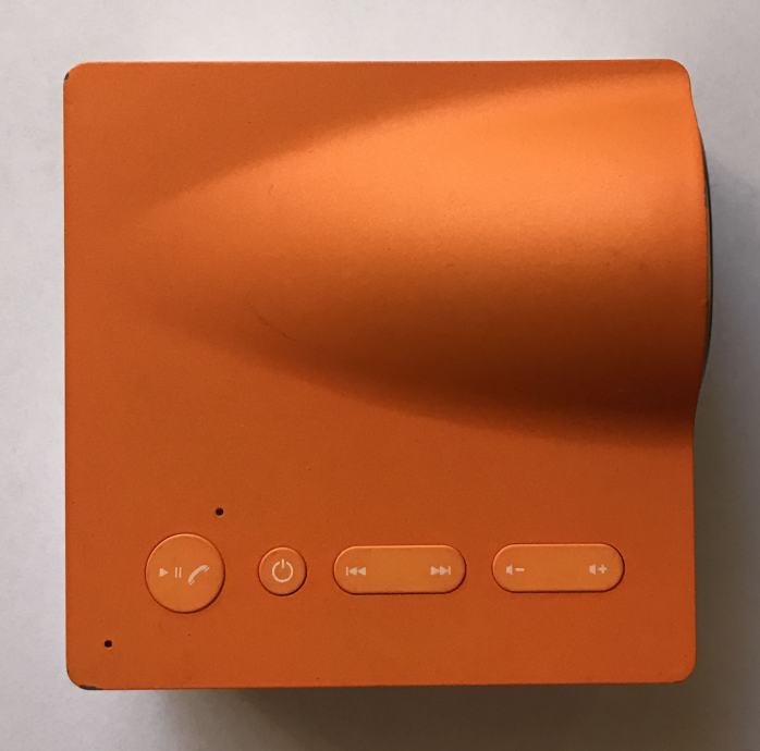 Prodajem bluetooth zvučnik sa slike. Radi i kao zvučnik i kao hands free uređaj (može se pričati preko njega ako je spojen na telefon). Radi s iPhone-om.