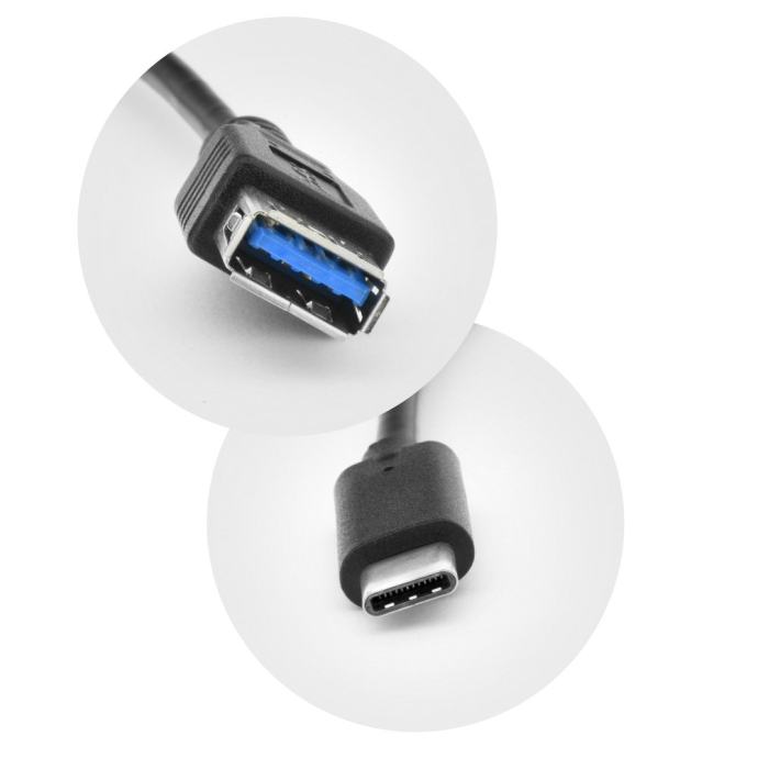 USB tip-C na standardni USB ulaz omogućuje povezivanje bljeskalice, tipkovnice, miša ili drugih standardnih USB-A uređaja s uređajem koji podržava USB Type C