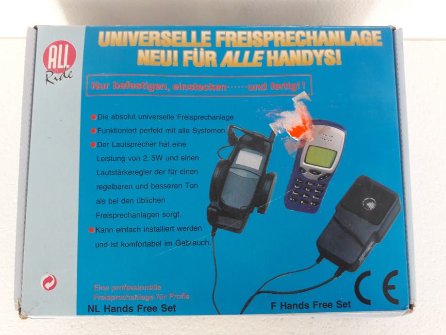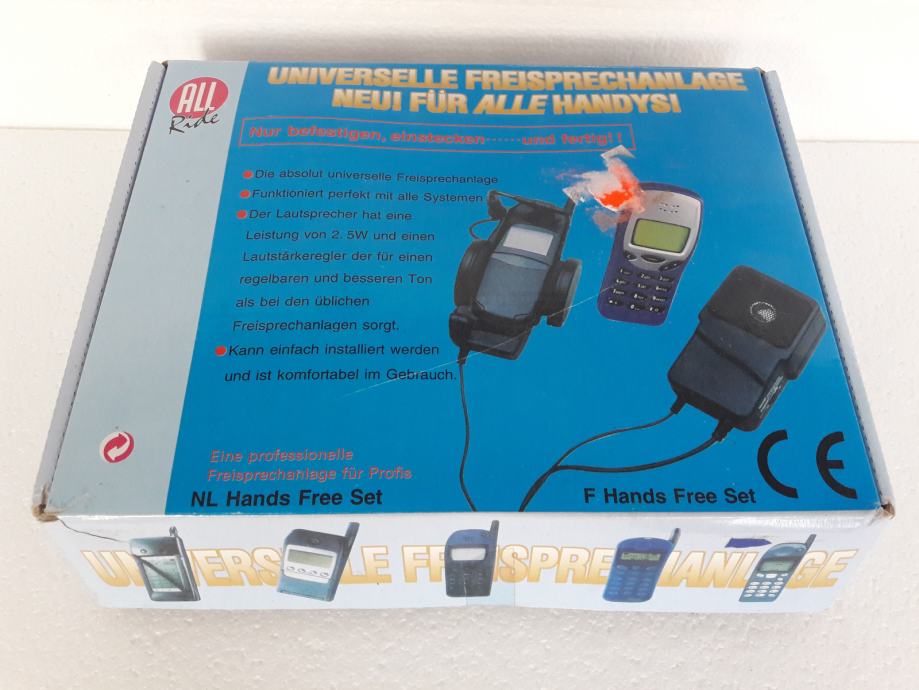 HANDS FREE SET - univerzalni uređaj za slobodno pričanje mobitelom u automobilu. Funkcionira savršeno sa svim sistemima. Zvučnik ima snagu od 2,5 W i potenciometar, pojačivač za dobivanje što kvalitetnijeg tona mobitela.