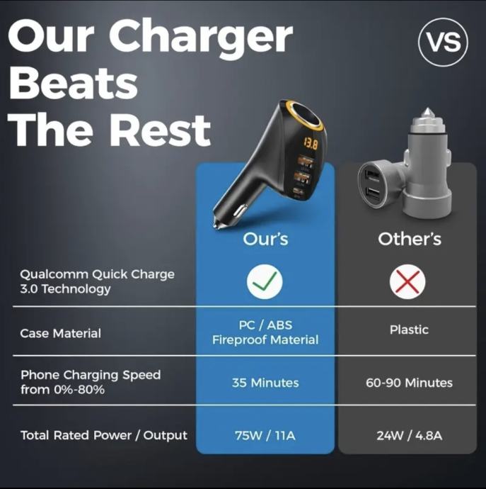 4 u 1 punjač za auto s dvostrukim USB priključkom s prikazom napona