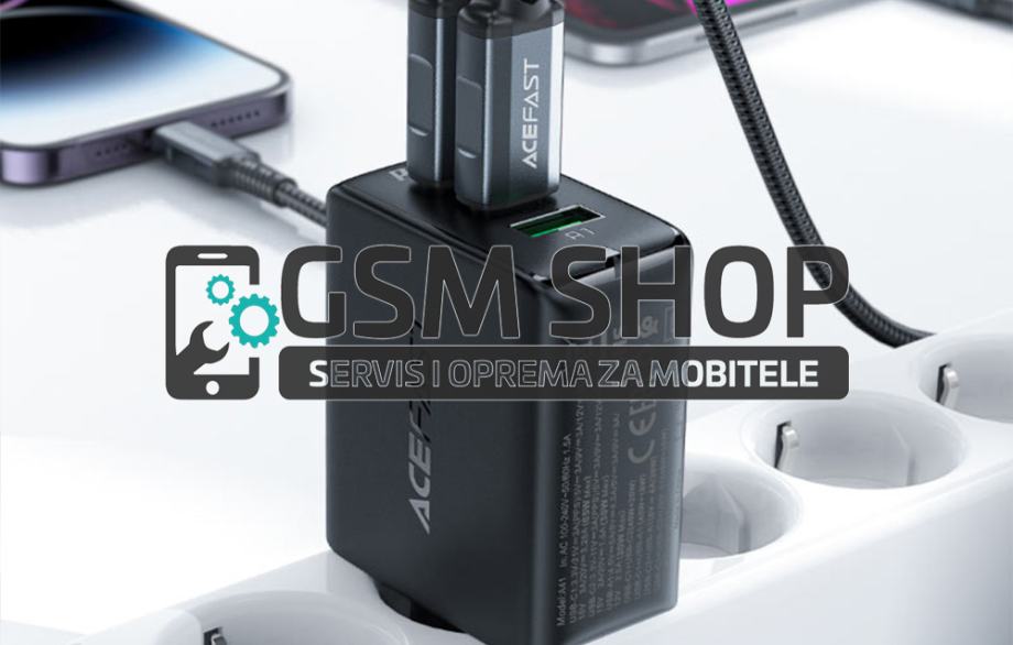 Acefast A41 Super brzi kućni punjač, 2x USB-C + USB-A, GaN 65W