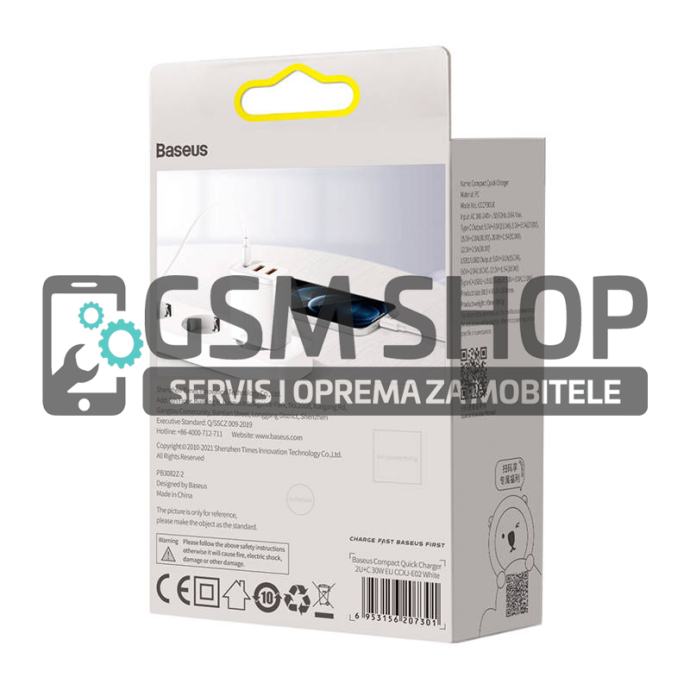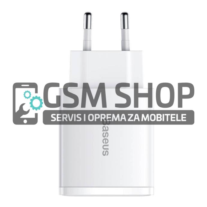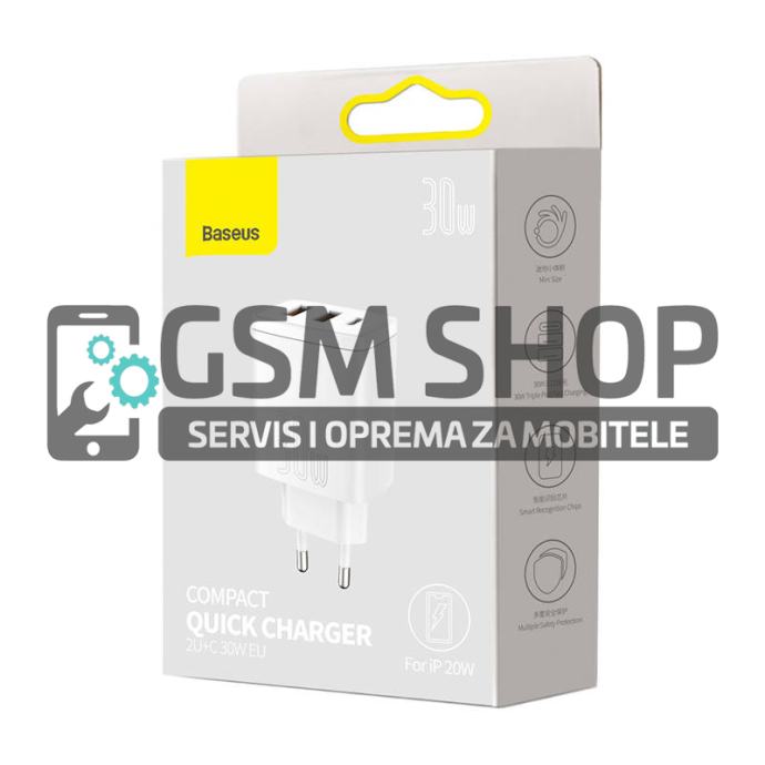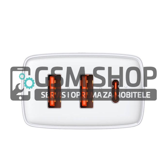 BASEUS Compact brzi punjač s dva priključka 2xUSB i Type C 30W bijeli