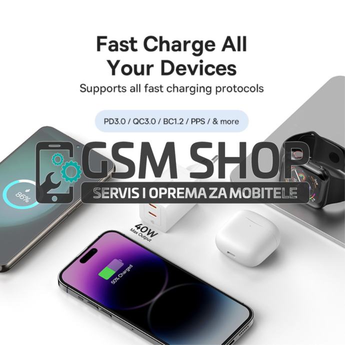 * Dvostruki Type-C izlaz od 40 W, brzo puni vaš telefon