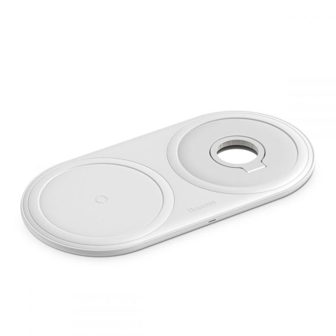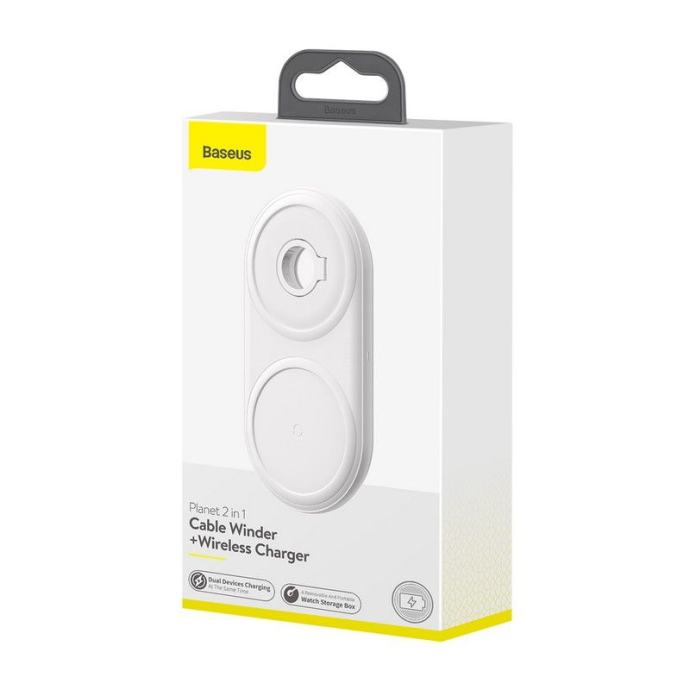 BASEUS PLANET 2u1 BRZI bežični punjač za mobitel i Apple Watch bijeli