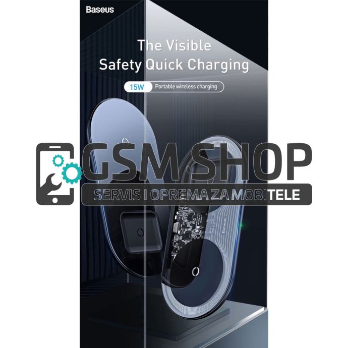 BASEUS 2-u-1 prijenosni prozirni Qi bežični punjač za brzo punjenje 15 W [posebno izdanje] za iPhone Airpods itd.