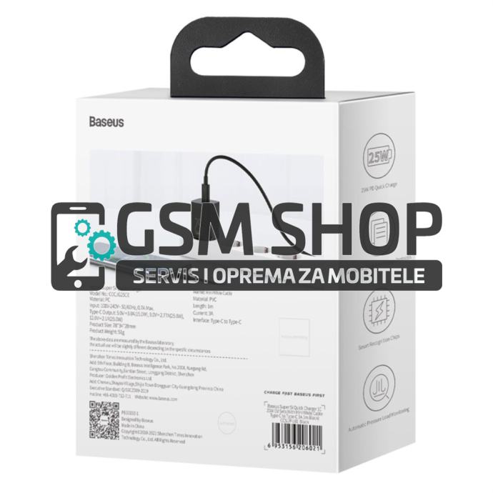 BASEUS Super Si brzi punjač 25W s podatkovnim kabelom Type-C na Type-C