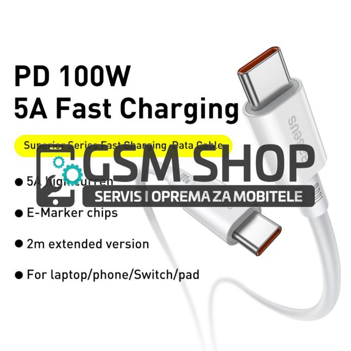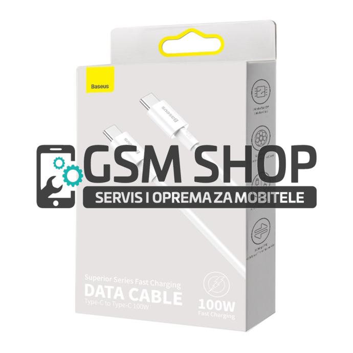 BASEUS Superior kabel brzo punjenje Type -C na Type C 100W 2m bijeli