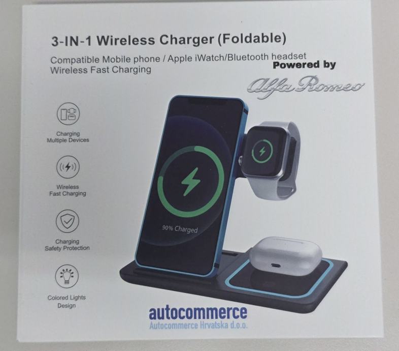 Potpuno novo, neotvoreno, nekorišteno. Bežični punjač Aluminium 3U1 za Apple mobitel / sat / airpods MF01 15W/3W/2W