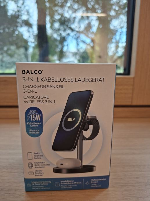 Prodajem novi bežični punjač Balco 3-in-1 na stalku, koji omogućuje istovremeno punjenje mobitela, slušalica i pametnog sata. Punjač podržava bežično punjenje do 15W, a stalak za mobitel ima podesivi kut nagiba. Magnetska veza osigurava stabilno pozicioniranje mobitela tijekom punjenja. Uređaj se napaja putem USB-a. Kompaktan dizajn koji ne zauzima puno prostora.