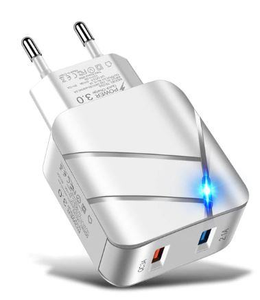 Punjač 28W brzi kućni QC3.0 USB5v 3A +2.1A iPhone 10 11 12 14 Samsung S10 Quick Charge, mobitel, tablet