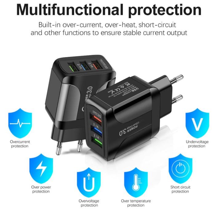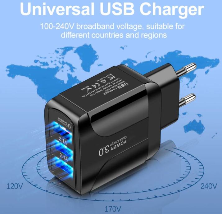 Punjač 30W brzi kućni QC3.0 3 x USB 3.1A iPhone 10 11 12 Samsung S10