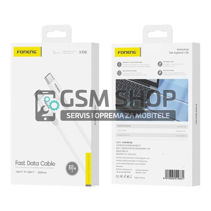 Foneng X106 60W USB-C na USB-C kabel, 1,2m
