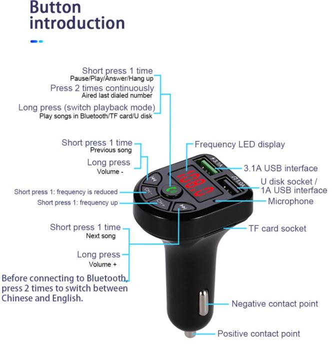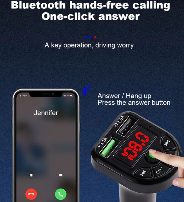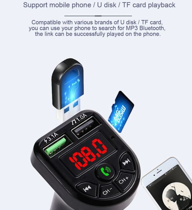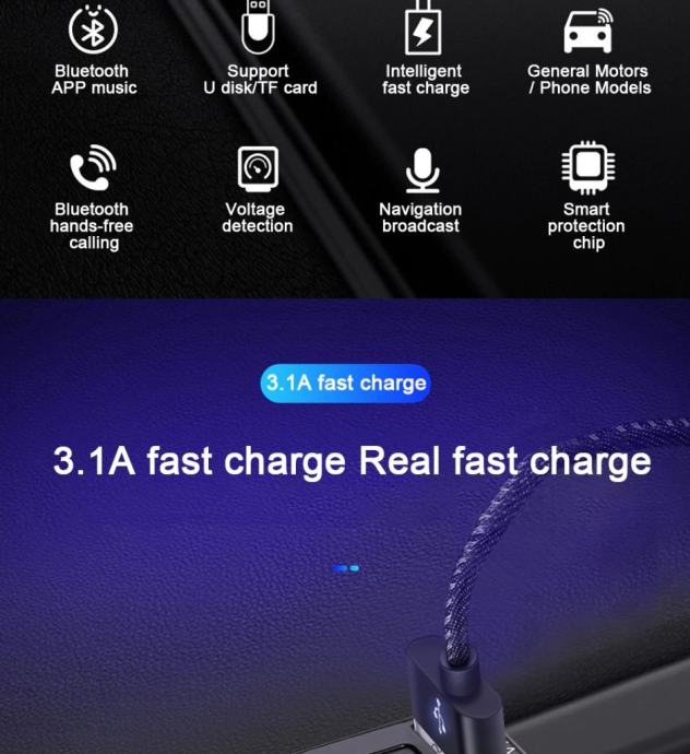 Kompatibilan BT 5.0 brzi auto punjač Mp3 player