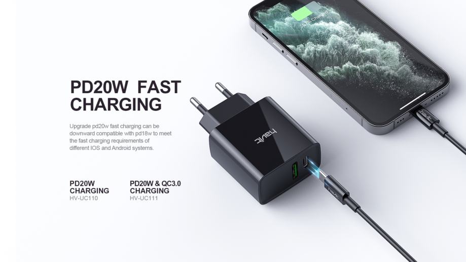 HAVIT UC111 brzi punjač PD 20W + USB QC 3.0.