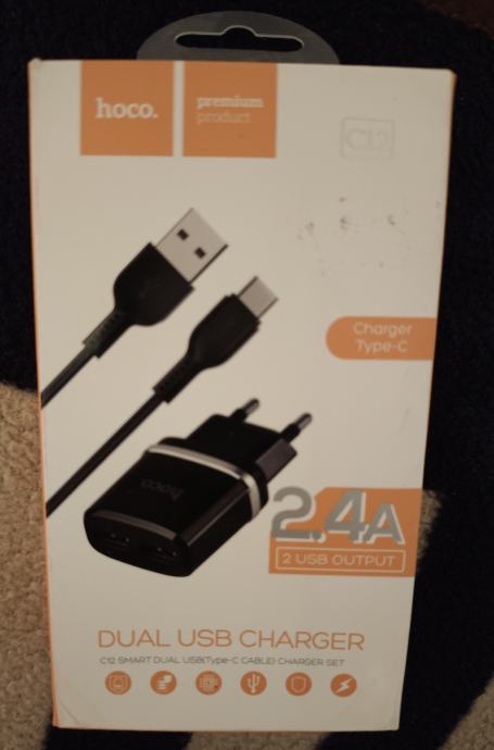 HOCO C12 Smart Dual USB punjač + USB-C kabel (2.4A) - NOVO