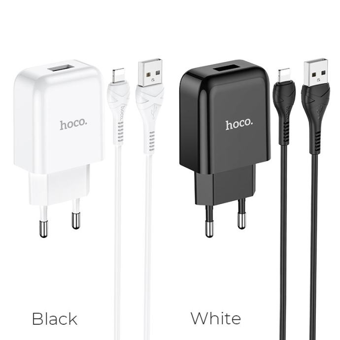 HOCO strujni punjač – 2.1A 1x USB + lightning Kabel N2 (crni)
