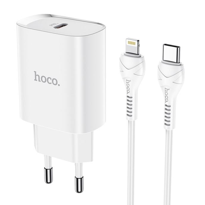 HOCO charger Type C PD20W Fast Charge Smart Charging with cable for iPhone Lightning 8-pin N14 white