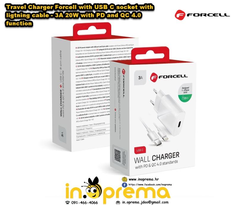 Travel Charger Forcell with USB C socket with ligtning cable - 3A 20W with PD and QC 4.0 function