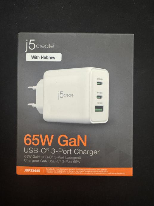 j5create 65 W GaN USB-C® punjač s 3 priključka