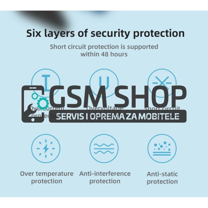 * Zaštita od prekomjernog struje, kratkog spoja i previsoke temperature za sigurnost vašeg uređaja nudi vam pametno iskustvo punjenja