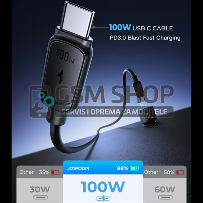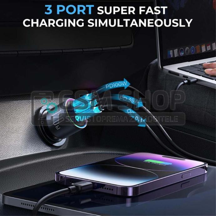 Je li vaš telefon blizu pražnjenja, a pred vama je još mnogo sati putovanja? Auto punjač Joyroom JR-CCN07 stiže u pomoć! Nudi punjenje do 120 W snage i podržava PD i QC3.0 standarde punjenja. Sadrži 2 USB-C priključka i USB-A priključak, tako da možete puniti 3 uređaja u isto vrijeme bez ikakvih problema. Također ćete pronaći USB-C kabel uključen.