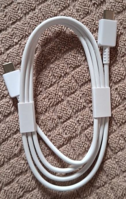 Prodajem nov USB-C na USB-C kabel, dužine 1 metar. Podržava brzo punjenje, idealan za punjenje mobitela, tableta i drugih uređaja s USB-C priključkom. Kabel je bijele boje s metalnim konektorima.