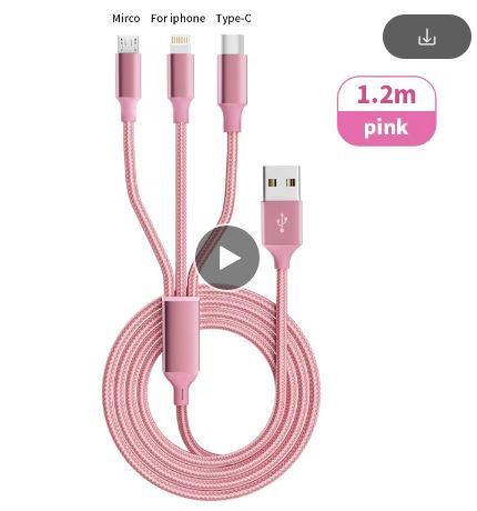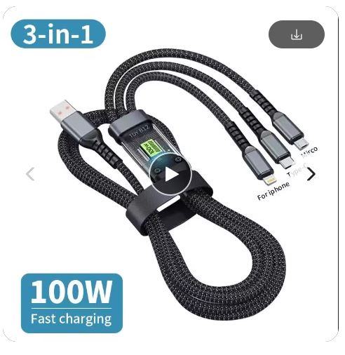 Kabel 1.2m 3u1 Usb micro USB-C Lightning Samsung Huawei Xiaomi, 120W