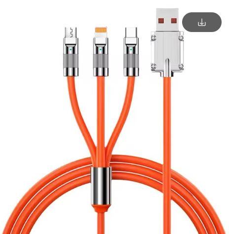 ORANGE Kabel 1.2m 3u1 Usb micro Type-c Lightning Apple Samsung Huawei Xiaomi, 120W
