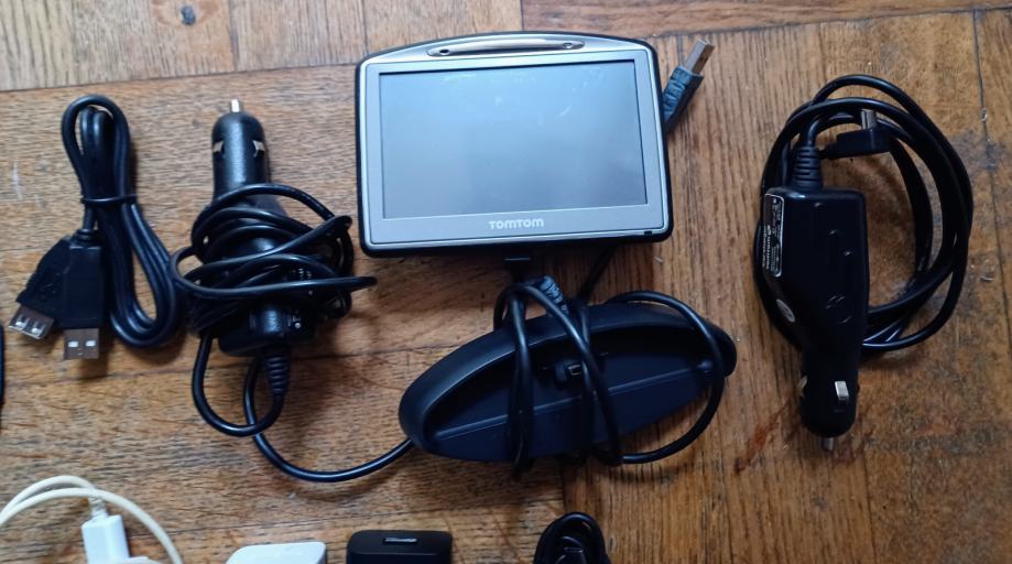 i navigacija Tom TOm go 720 iz 2008. u kožnoj futroli sa stalkom za punjenje i 2 autopunjača - nepoznato stanje, korištena godinu dana kad je bila kupljena i otada nije ažurirana ni korištena