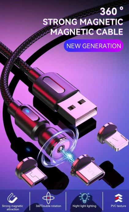 Magnetni punjač za mobitel, 2m duljine (NOVO)