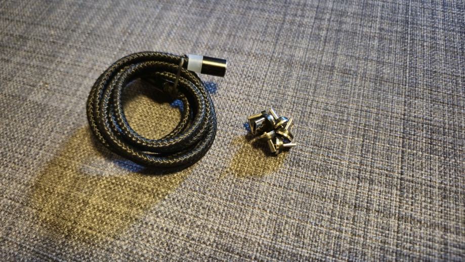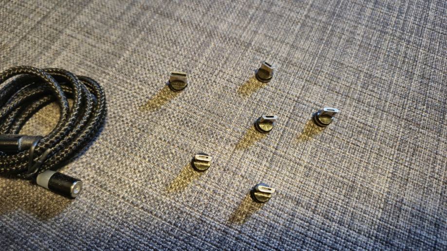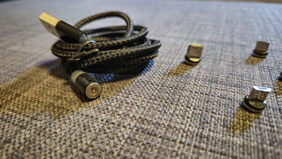 Prodajem crni pleteni magnetski kabel (1 metar) za punjenje, uz kabel dolazi 1 Type C i 5 Micro USB nastavka.