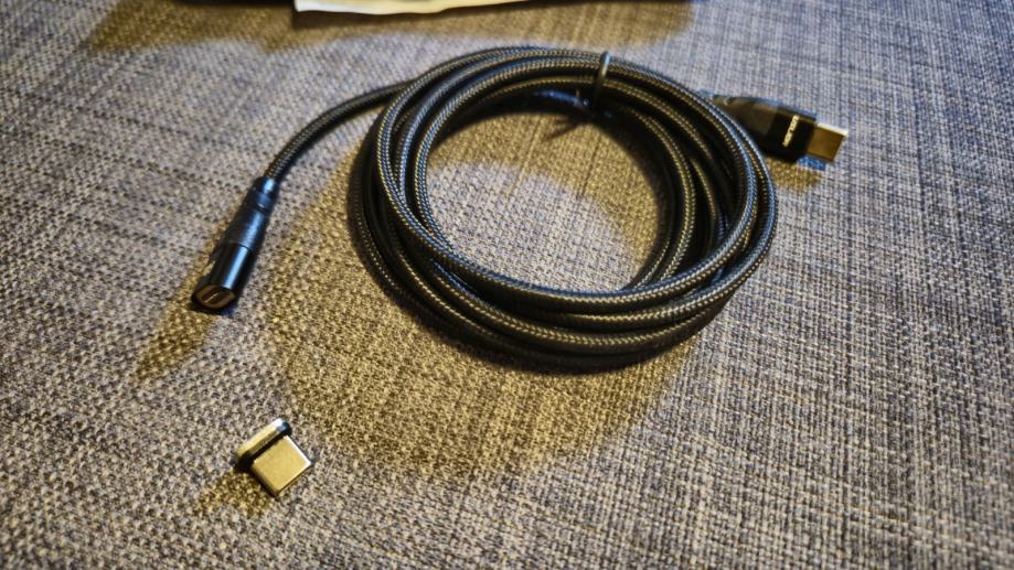 Prodajem crni pleteni magnetski kabel (2 metra) za punjenje mobitela/laptopa, kabel može služiti i za prijenos podataka (USB 2.0).