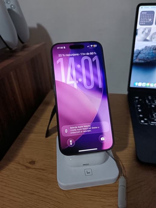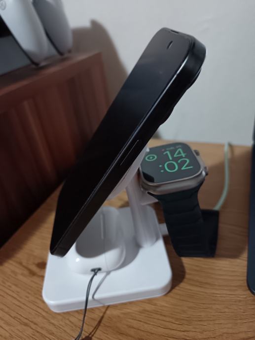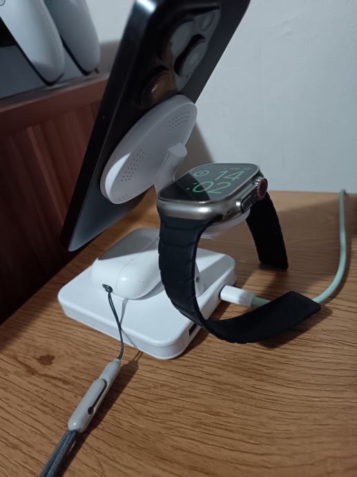 Prodajem novu Magsafe stanicu za punjenje uređaja. IPhone (12-17, svi modeli) serija imaju magsafe punjenje tako da samo prislonite mobitel i magneti će ga držati dok se puni. Također ima posebno mjesto za punjenje bežičnih slušalica (airpods ili druge koje podržavaju bežično punjenje), posebno mjesto za punjenje apple watcha (svi modeli podržani) te iza ima brzi USB port za punjenje ostalih uređaja (zvučnici, tableti, kamere i slično). Kvalitetno izrađeno i praktično. Također ima LED osvijetljenje pa je idealno za radni stol kao radna svijetiljka. Svijetlo se pali pomoću dugmeta na dodir. Uz stanicu dolazi odgovarajući kabal. Cijena 60€