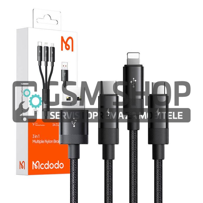 3u1 USB na USB-C / Lightning / Micro USB kabel, Mcdodo CA-5790, 3,5 A, 1,2 m (crni)