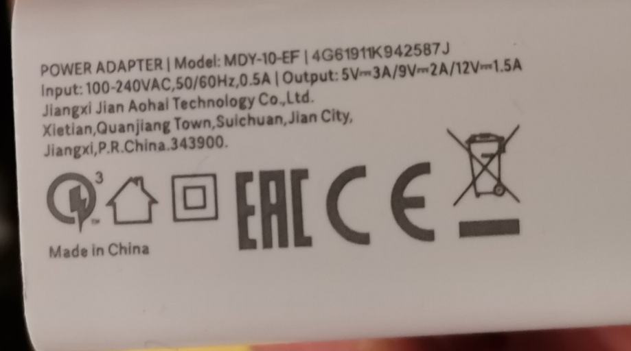 MI Power adapter model MDY -10-EF 4G 61911K 942587