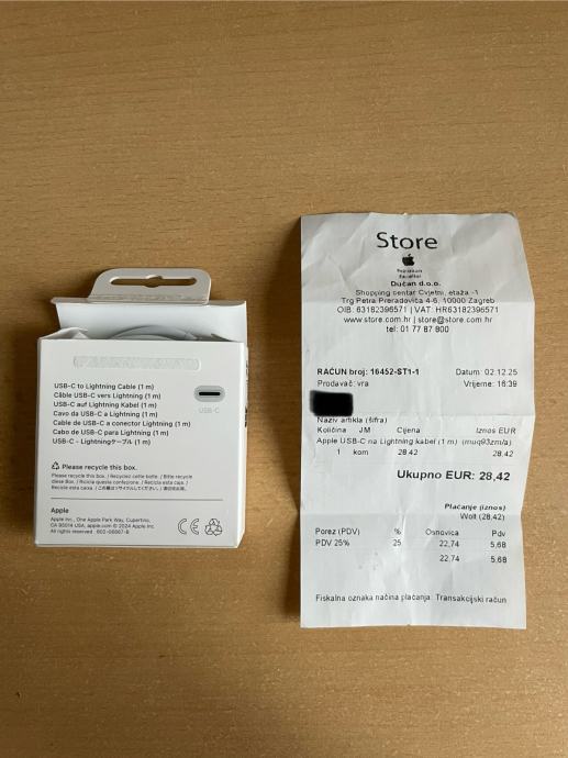 Prodajem originalni Apple USB-C to Lightning Cable (1 m), u originalnom pakiranju, sa računom, korišten par puta.
