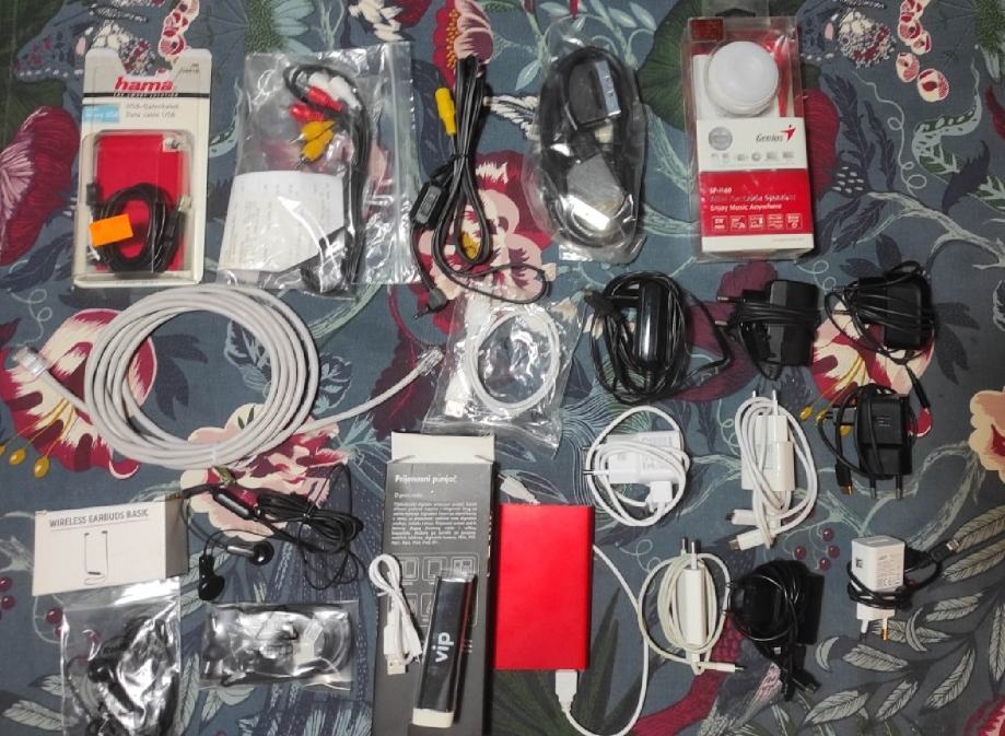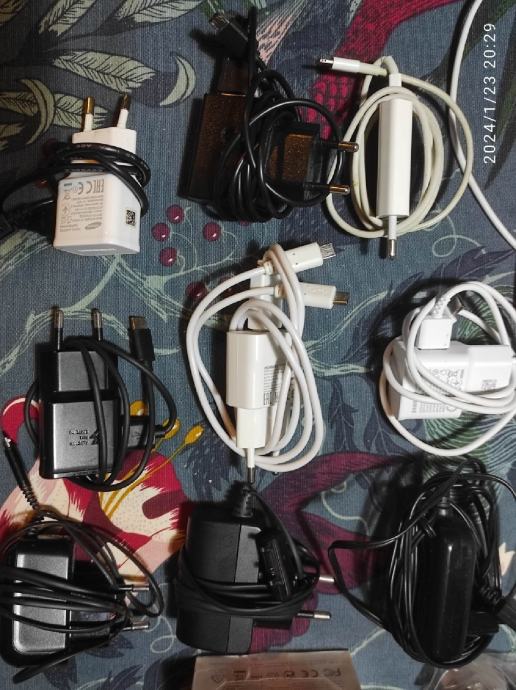 prodajem 15 punjača, 8 slušalice,kabele,2 prijenosna punjača,zvučnik