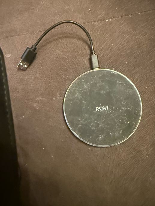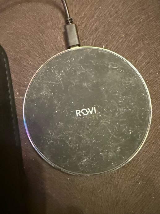 Prodajem rabljeni Rovi punjač za iPhone 14 Pro i Pro Max u dobrom stanju. Punjač je kružnog oblika s jasno vidljivim logotipom marke Rovi. Praktičan je i funkcionalan za brzo punjenje najnovijih iPhone modela.