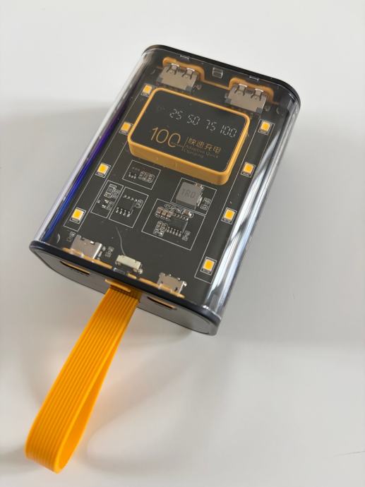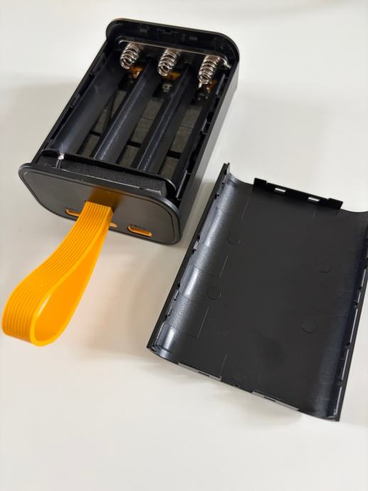 Prodajem nov punjač za baterije tipa 18650. Punjač ima tri utora za punjenje baterija, transparentno kućište sa crnim poklopcem i praktičnu narančastu traku za nošenje. Punjenje se obavlja preko USB-C priključka. Kompaktnih dimenzija i lagan za prijenos.